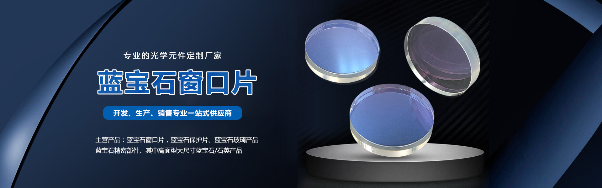 主營:藍寶石窗口片,藍寶石保護片、藍寶石玻璃產品
